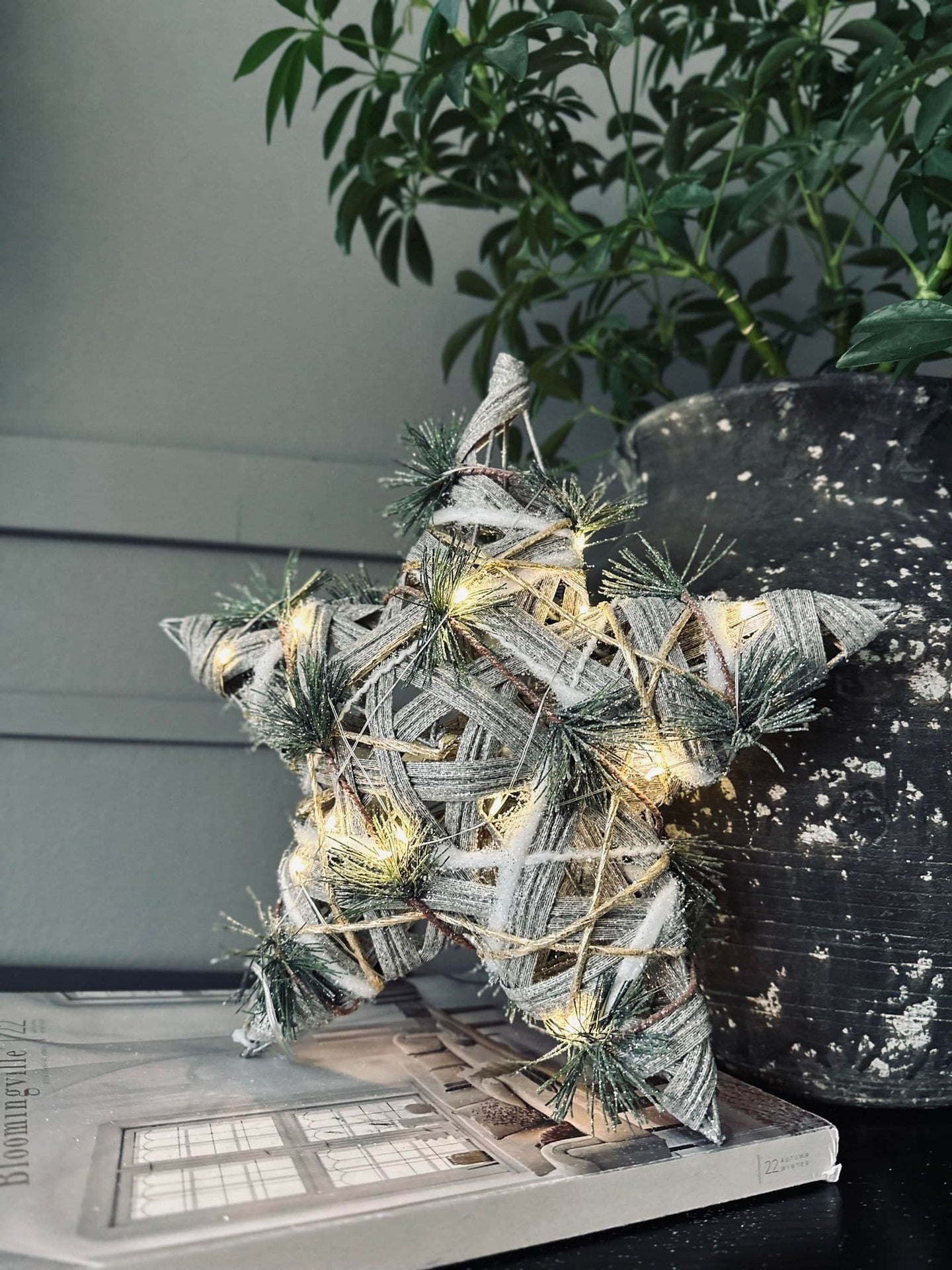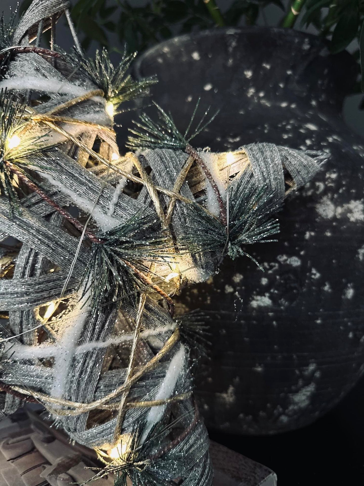Stjerne med LED lys og gran - 30cm - VIAMAJA.DK