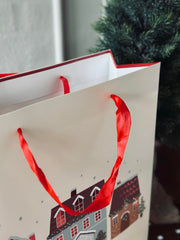 Julegaveposen er laget med en tykkelse på 210 gsm, noe som gir den en robust kvalitet. Denne tykkelsen sikrer at posen tåler vekten av gaver uten å revne, noe som er ideelt for å beskytte innholdet. Den solide konstruksjonen gjør at posen kan brukes flere ganger, noe som gir en mer bærekraftig løsning for gaveinnpakning i julehøytiden.