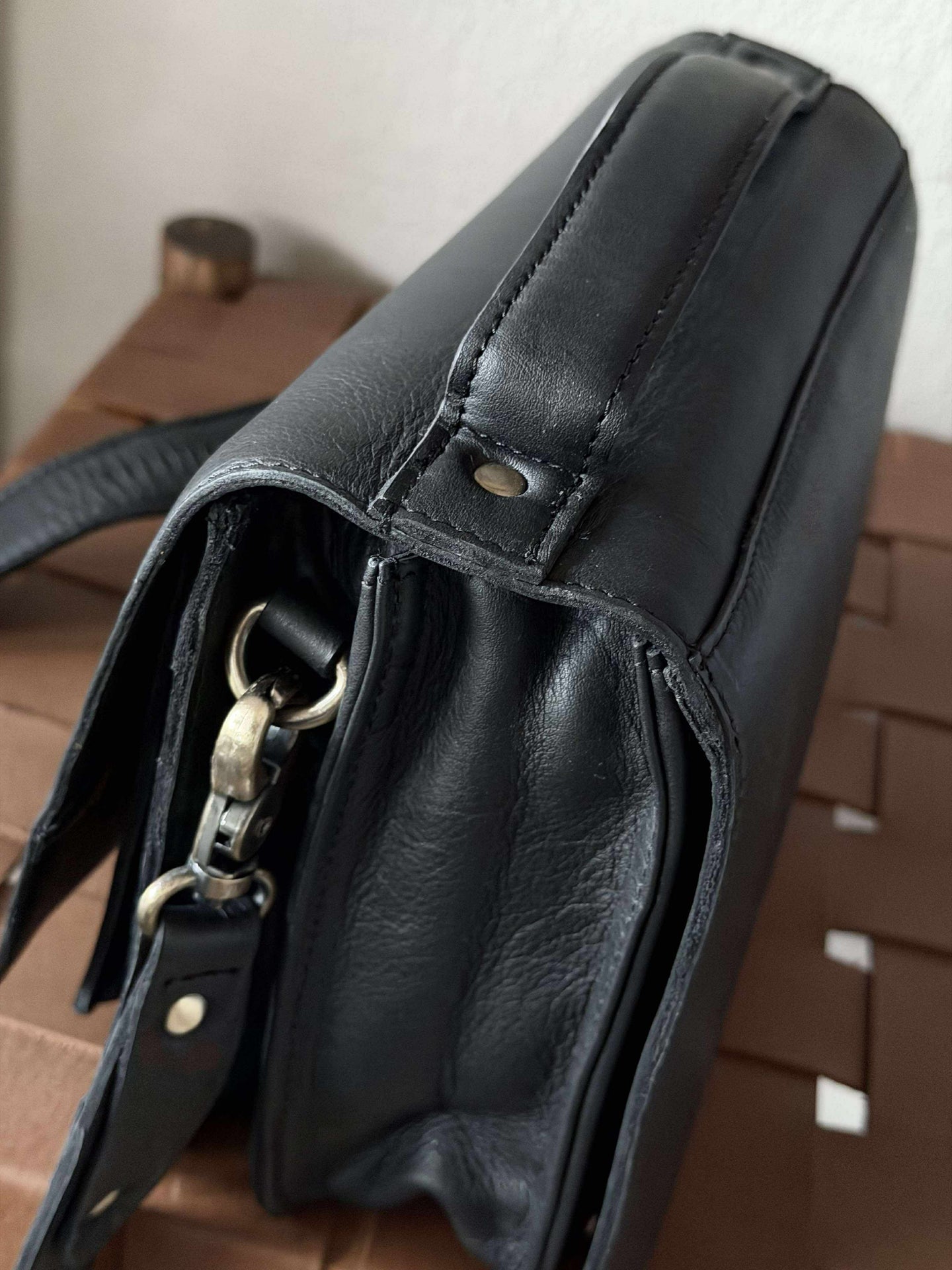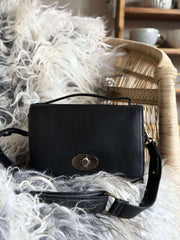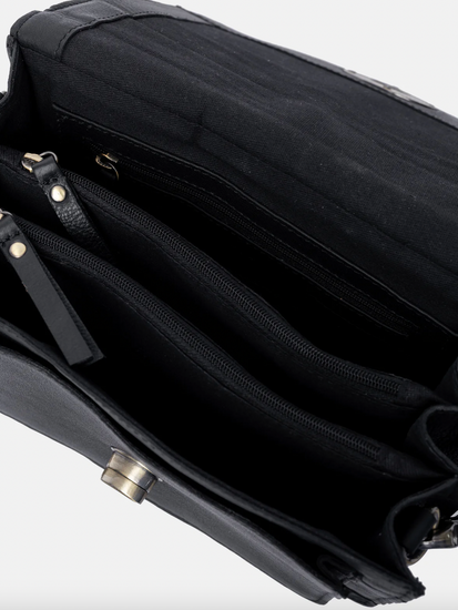 - Crossover-vesken har et hardcase-design i svart ekte lær