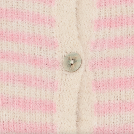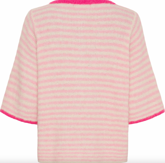 Strikk Susanne rosa er en myk strikket overdel i en klar rosa farge med fine striper og et avslappet, oversized uttrykk.