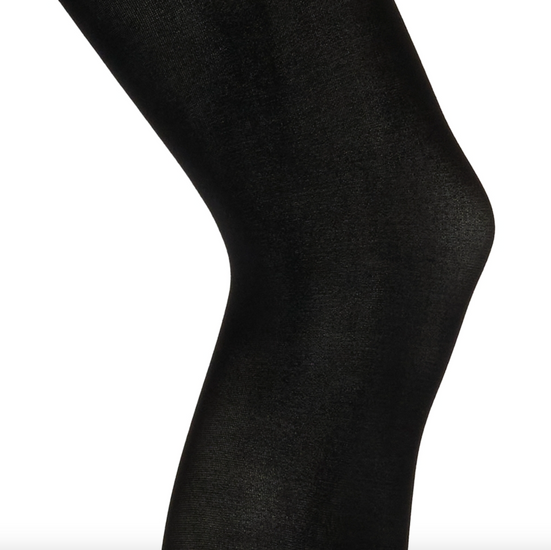 Strømpebuksene er ensfargede i svart. Materialet er nylon.