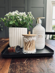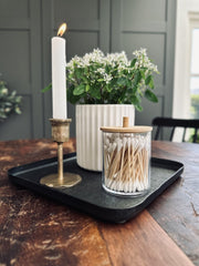 Sliter du med å finne et enkelt og stilig tillegg til hjemmet ditt? Dette svarte, organiske lysfatet gir en diskret og funksjonell løsning for å samle og presentere stearinlys eller små gjenstander, samtidig som det tilfører en subtil, moderne estetikk til innredningen din.