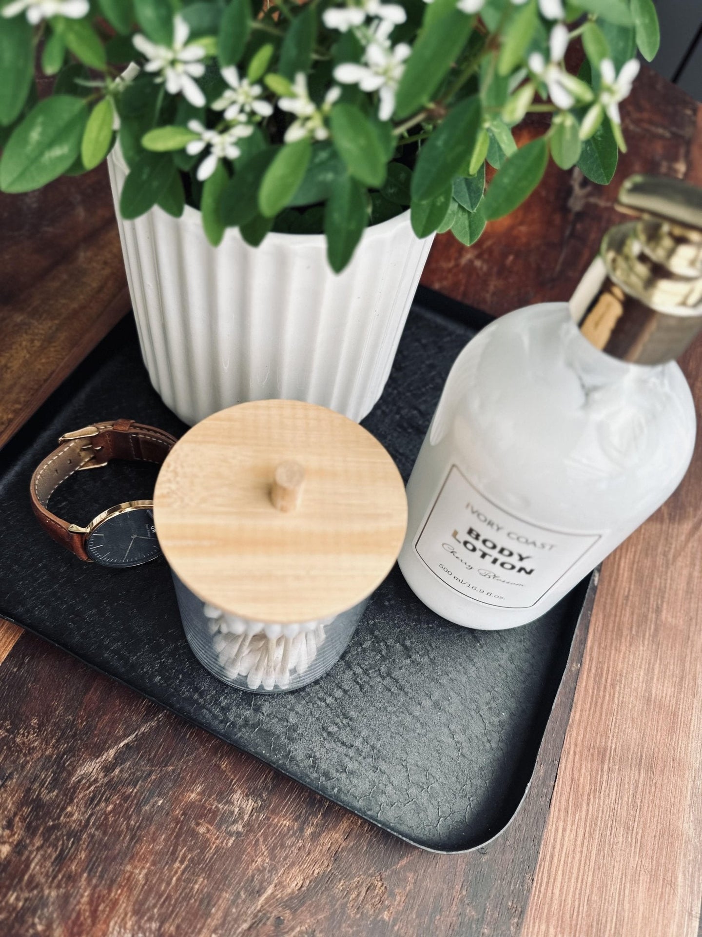 Gi hjemmet ditt et elegant og praktisk løft med dette organiske lysfatet. La det hjelpe deg med å holde orden på stearinlysene dine og skape en avslappende atmosfære. Inviter ro og balanse inn i hjemmet ditt med dette stilige tillegget til innredningen din.