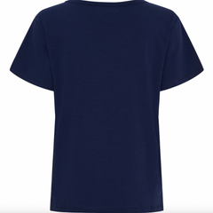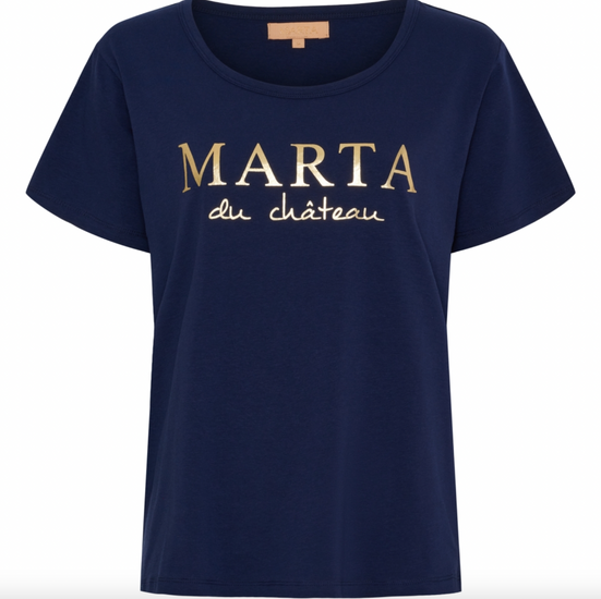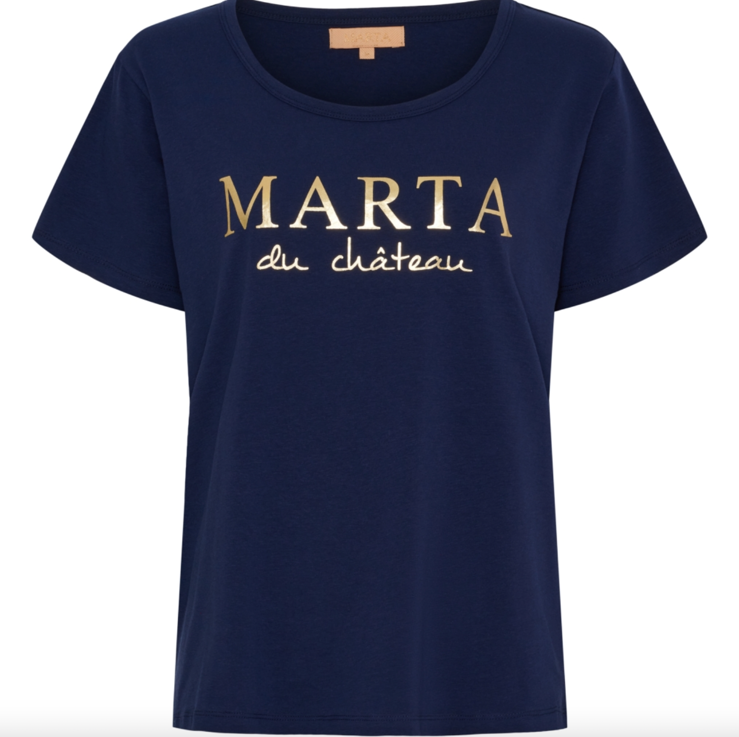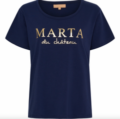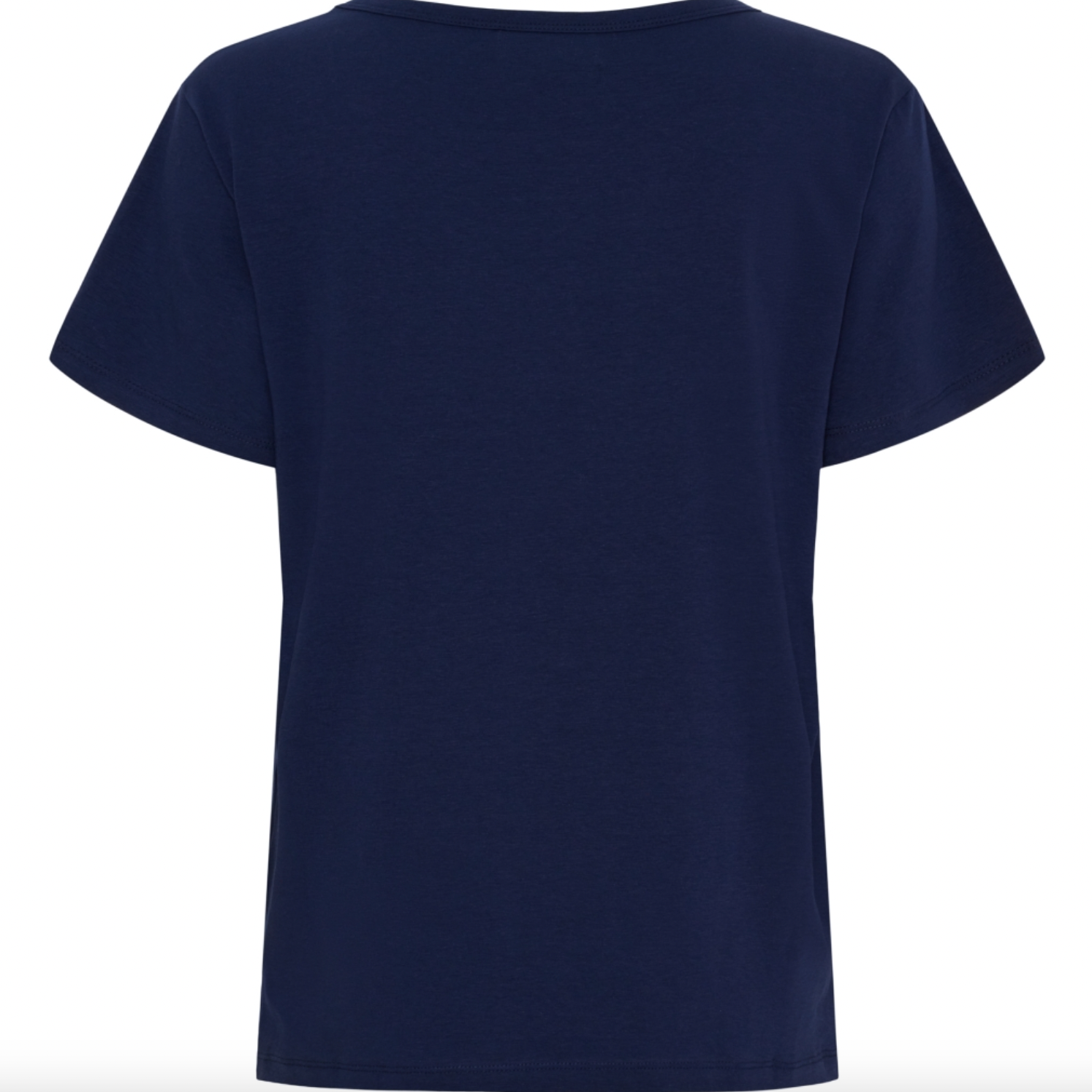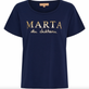 T-skjorte Marta Navy er en lekker, myk t-skjorte i blå med print og en regular passform. Den er normal i størrelsen og har en behagelig kvalitet, som gjør den enkel å bruke igjen og igjen i garderoben.