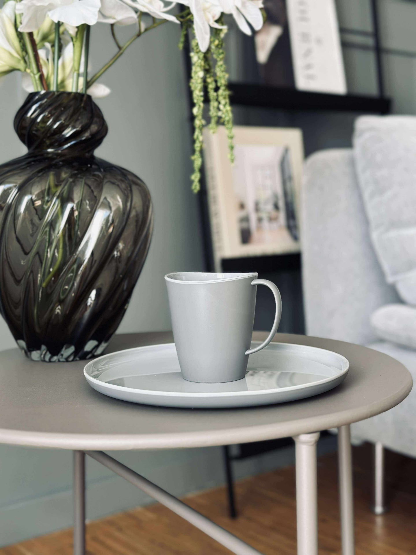 Tallerkenen er laget av plast, noe som gir flere praktiske fordeler i hverdagen. Plast er et lett materiale, noe som gjør tallerkenen enkel å håndtere, både ved servering og oppbevaring. Den er også holdbar og motstandsdyktig mot skader, noe som forlenger levetiden. Vedlikeholdet er enkelt, da plast kan vaskes raskt for hånd eller i oppvaskmaskin. Dette gjør tallerkenen til et praktisk valg for både innendørs og utendørs bruk.