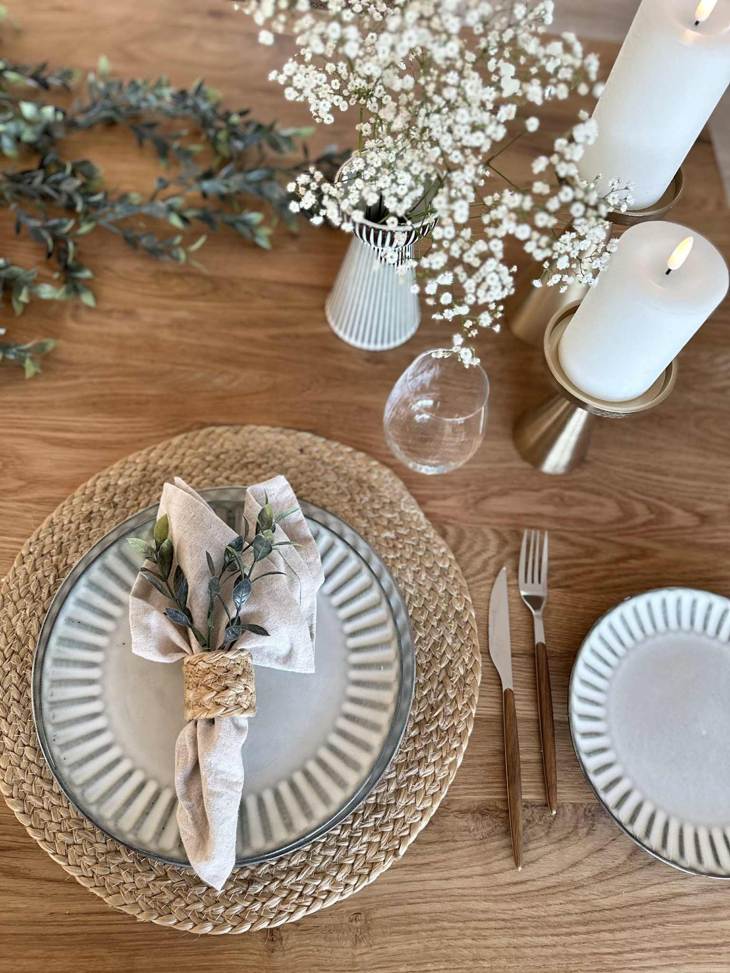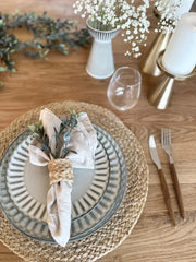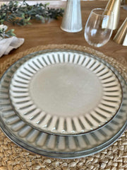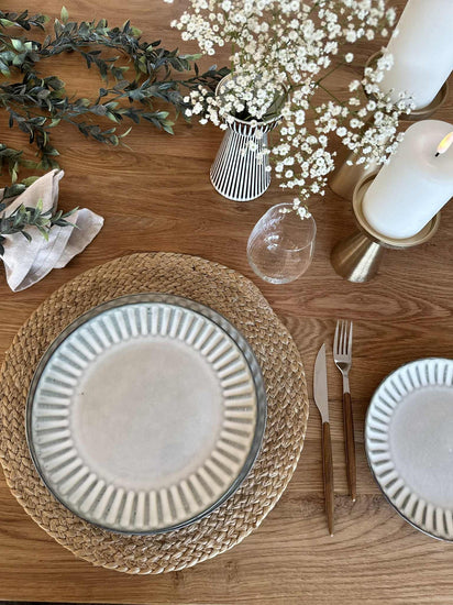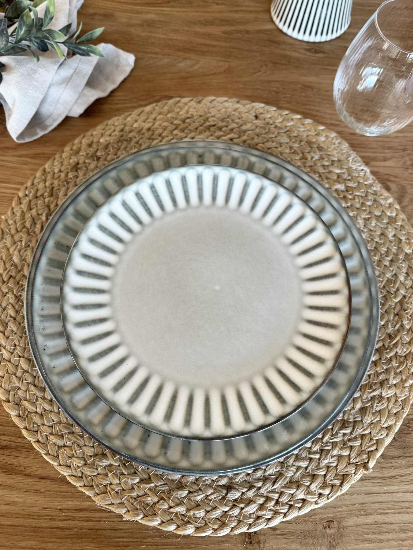 VIGA-tallerkenen er laget av stentøy, noe som gir en solid og varig konstruksjon. Dette materialet tåler daglig bruk og holder seg godt over tid. Stentøyets naturlige tekstur gir tallerkenen en tidløs estetikk som enkelt kan tilpasses forskjellige borddekkinger. Den robuste overflaten motstår riper og flekker, noe som gjør den praktisk for både hverdagsbruk og spesielle anledninger.