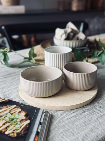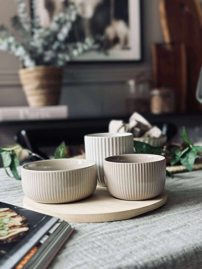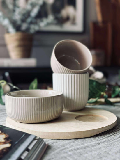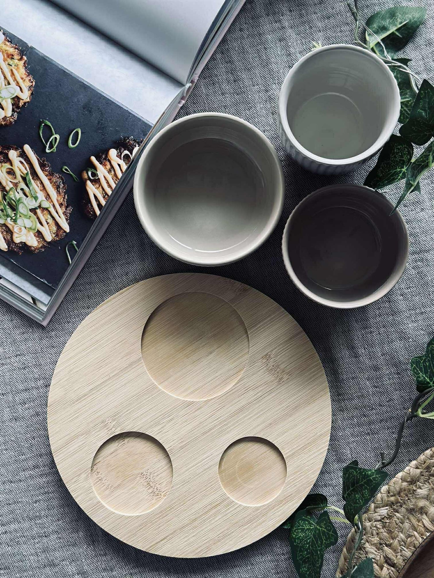 Sliter du med å servere tapas på en praktisk måte? Dette settet gir en enkel løsning for å arrangere og servere småretter. Med tre skåler og et fat blir det lett å organisere og imponere gjestene dine med stilren servering.