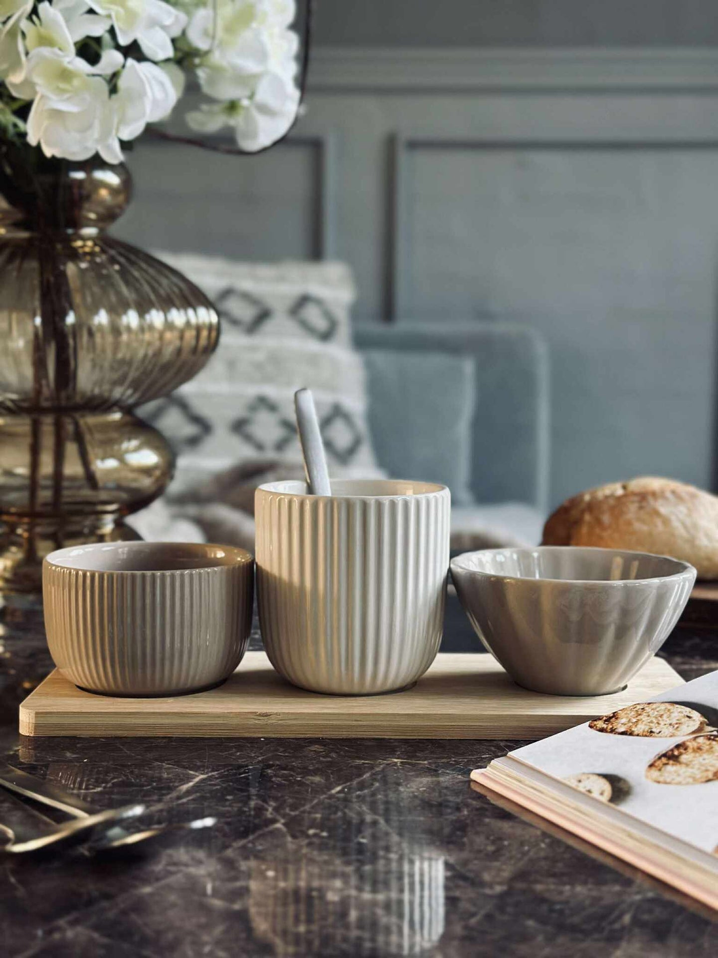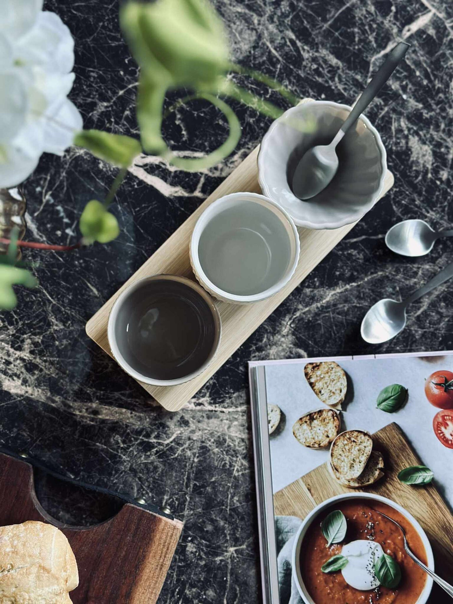Perfekt til tapas og snacks — som tapas fat eller brett, hvor skålene kan brukes til dip, nøtter eller små tilbehør, mens resten anrettes på fatet.