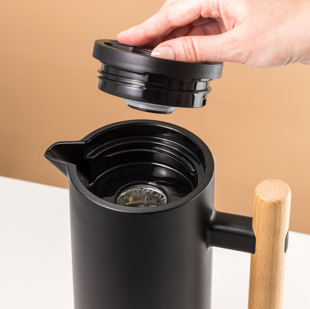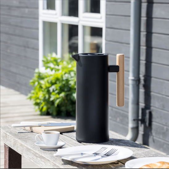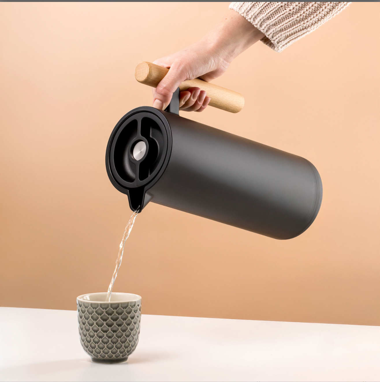 - Håndtaket i ekte tre gir termokannen et varmt, nordisk utseende