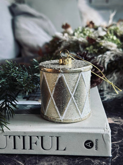 Tromme til oppheng er en liten, dekorativ detalj som tilfører et fint og enkelt uttrykk til pynten din. Den ensfargede overflaten i champagnefarge gir et rolig uttrykk, som fungerer vakkert sammen med både klassiske og mer moderne dekorasjoner.