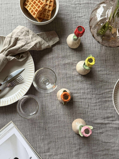 - Små dekorasjonstulipaner med en høyde på 12,8 cm
