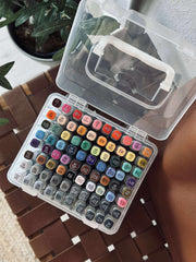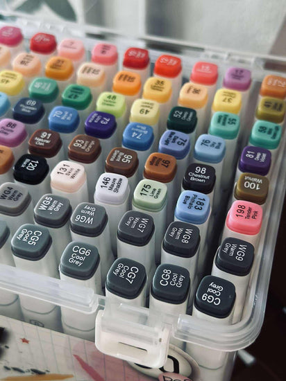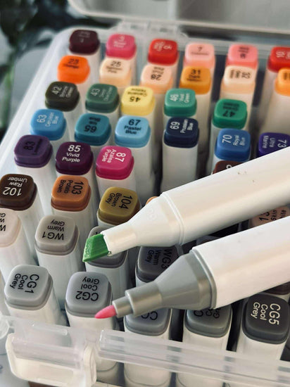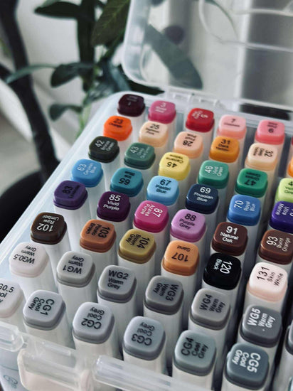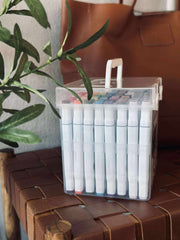 Tusjer Duo er en eske med 80 stk. flerfargede tusjer, som gjør det enkelt å samle mange farger på ett sted. Hver tusj har dobbeltspiss, slik at du kan skifte uttrykk underveis, avhengig av om du vil lage fine detaljer eller brede fargeflater.