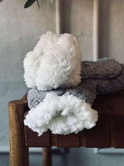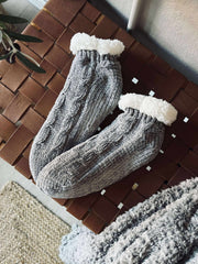 Varme sokker i størrelse 42-46 i en nøytral grå nyanse. Sokkerne har en myk overflate og et behagelig, rolig uttrykk, som gjør dem enkle å kombinere i garderoben. Det struktur/vevde mønsteret gir et diskret uttrykk uten å dominere visuelt.