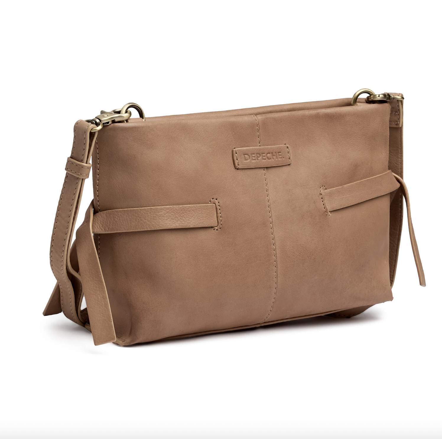 - Clutch-vesken har bindebånddetaljer på sidene