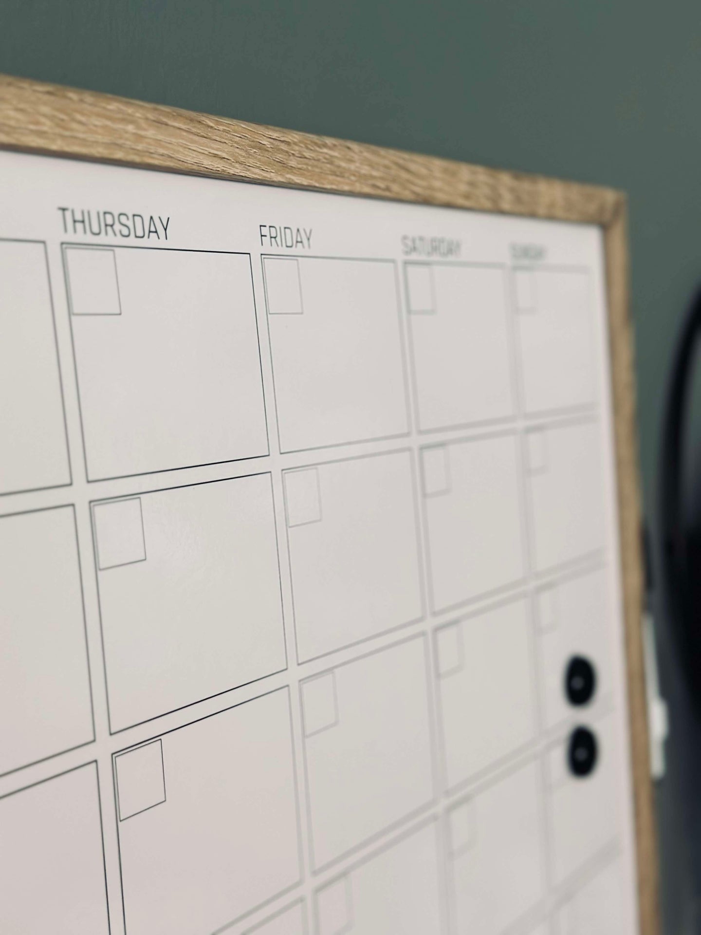 - Ugedagene er angitt på engelsk, og datoene kan skrives inn med whiteboard-markør